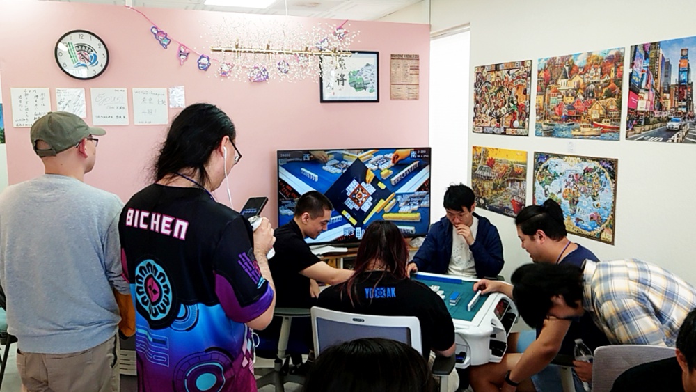 その後、PMLには多くの人が集まってきた。どうやらトーナメントの参加者は、大会前の練習としてこの場所を利用できるようだ。せっかくだから、まだ対局したことのない人と打ってみたいと希望を出し、私の希望を叶える形で3半荘ほど遊ばせて頂いた。日本にいる間、TwichでPMLの動画をいくつか見たことがある。その中で、私が一緒に打ってみたいと思っていたスカイとも卓を囲むことができて、勝敗はともかく大満足である。