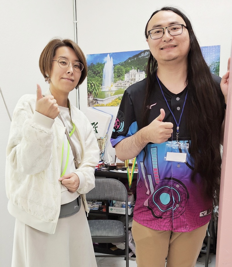 最後に、少し趣向を凝らした方法で麻雀をすることになった。その名も「Hand and Brain」と呼ぶらしく、打ち手の後ろに控えるもう一人の人間が指示を出すのだ。出せる指示は「マンズ」「ピンズ」「ソウズ」「字牌」と、各種発声のみであり、どの牌を選択するのかは打ち手に委ねられる。打ち手と指示役の雀力さが体感できる面白いやり方なのである。